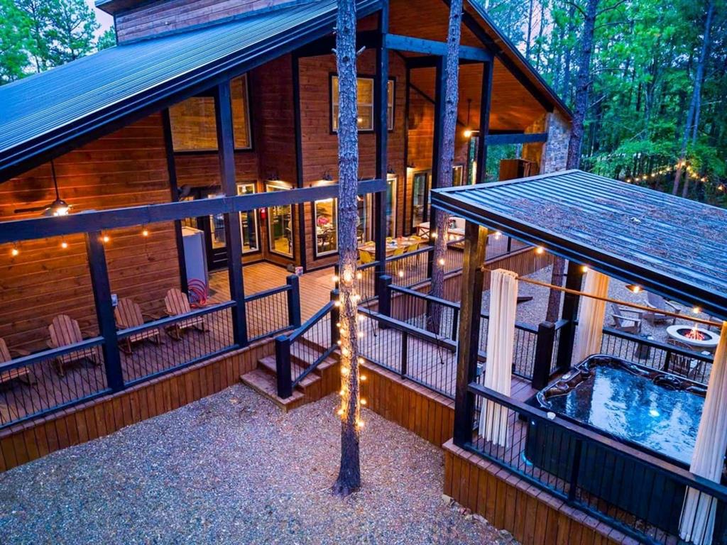 If you're looking for a cabin that stands out with excellent amenities (mini putt-putt, pool table, arcade, play set + hot tub) with TOP TIER RENTAL HISTORY of $150K in 2024, then you've found it! This stunning luxury cabin is a masterpiece offering an unparalleled retreat nestled among towering pines in the highly sought-after Pine Hill North Phase III! "Beauty & the Beast" seamlessly blends modern elegance with rustic charm. Featuring four spacious master suites + a bunk loft and four and a half beautifully designed bathrooms, this cabin provides both comfort and privacy. Step inside to an expansive open-concept living area, where soaring ceilings and massive glass windows showcase breathtaking wooded views. The gourmet kitchen is a true showpiece, boasting striking emerald cabinetry, sleek granite countertops, and premium stainless steel appliances--perfect for creating unforgettable meals. The adjoining dining and living spaces are ideal for entertaining, complete with a cozy stone fireplace and warm wood accents. Designed for relaxation and recreation, this property features a generous game room with a full-sized pool table and additional entertainment space. The second floor houses the fourth master suite and an impressive bunk room with six custom-built beds, offering ample space for family and friends. Each master bathroom is a spa-like oasis, adorned with granite countertops and exquisite stone-accented showers. Outdoor living is just as impressive, with a sprawling deck that invites you to unwind by the outdoor fireplace, soak in the large covered hot tub, or simply take in the peaceful surroundings. With its prime location near Beavers Bend State Park, Broken Bow Lake, secluded trails, and the area's best shops and restaurants, "Beauty & the Beast" is perfect as a private getaway or an investment opportunity. Sold fully furnished and turnkey, this cabin is ready to be your luxurious mountain retreat.